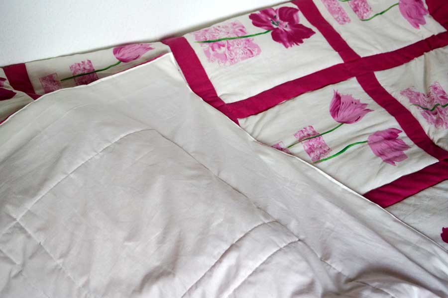 Ich war fleißig an Pfingsten. 1,5 Tage habe ich mit Näh- und Flickarbeiten zugebracht. Größtes und aufwändigstes Werk war dabei die Reparatur der Tagesdecke.